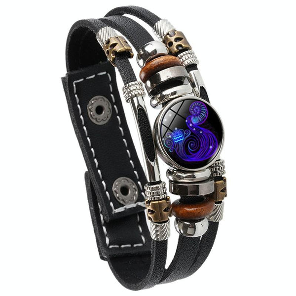 Twelve Constellations Night Light Leather Rope Bracelet Woven Beads Bracelet, Style: Aquarius