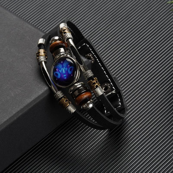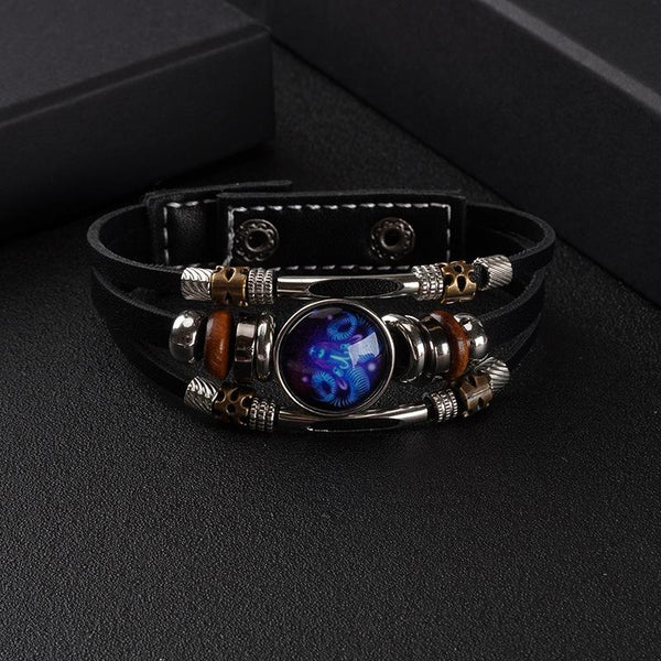 Twelve Constellations Night Light Leather Rope Bracelet Woven Beads Bracelet, Style: Cancer