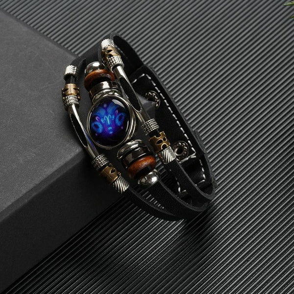 Twelve Constellations Night Light Leather Rope Bracelet Woven Beads Bracelet, Style: Capricorn