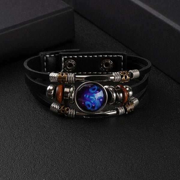 Twelve Constellations Night Light Leather Rope Bracelet Woven Beads Bracelet, Style: Pisces