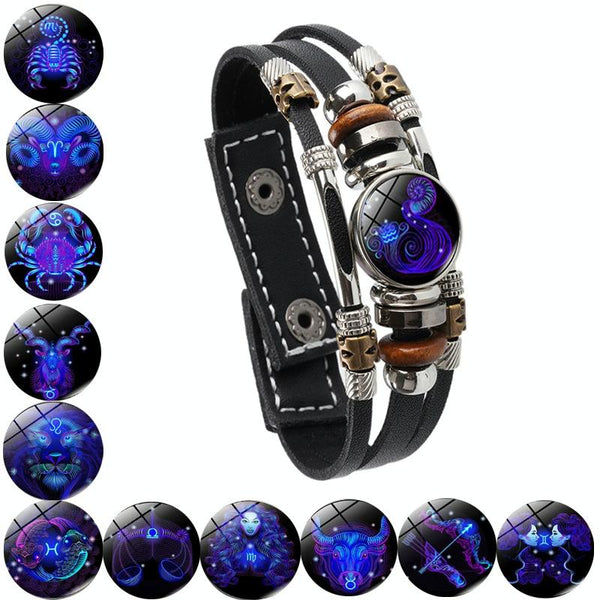 Twelve Constellations Night Light Leather Rope Bracelet Woven Beads Bracelet, Style: Sagittarius
