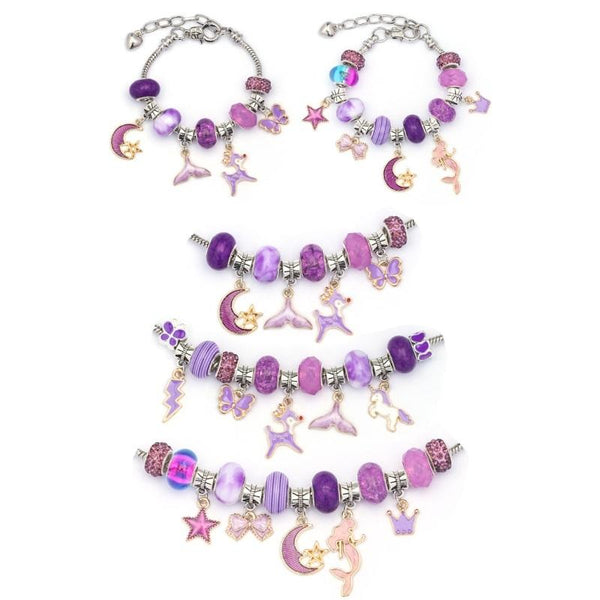 TZ-05 63 In 1 Colorful Crystal Cartoon DIY Jewelry Children Bracelet(Purple Suit)