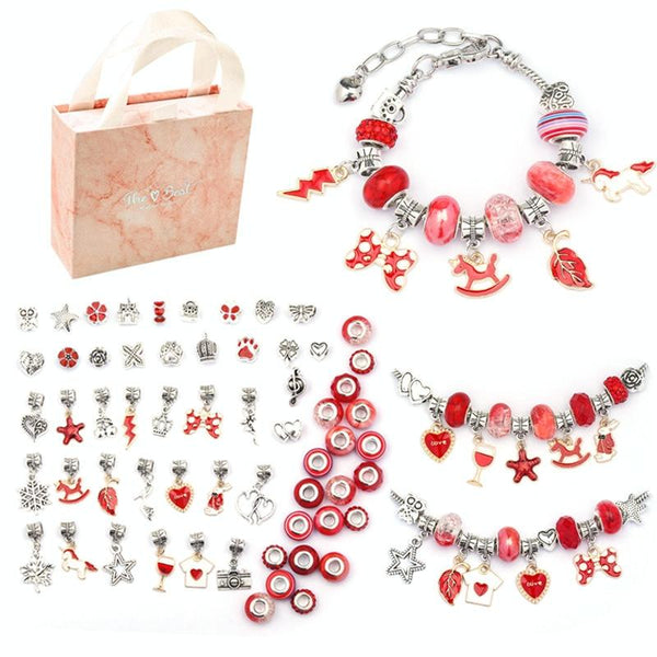 TZ-05 63 In 1 Colorful Crystal Cartoon DIY Jewelry Children Bracelet(Red Suit)