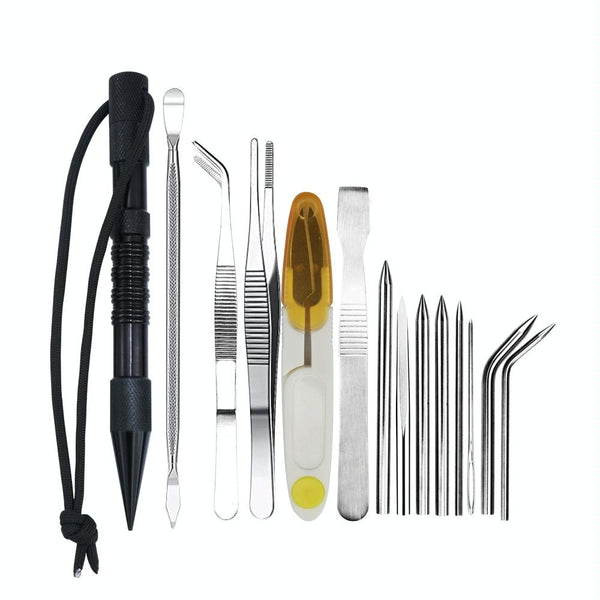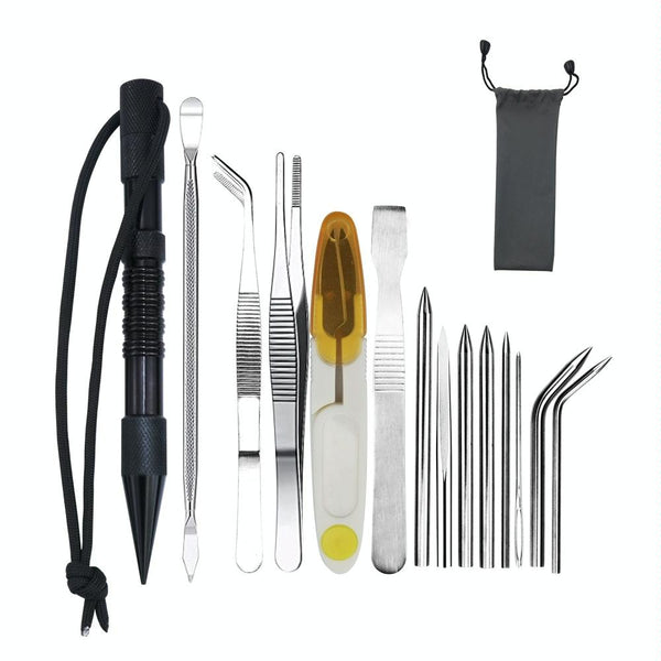 -12 pcs / set (about 172.5g/set): marlin nail x1, pin x1, 3x78mm umbrella rope needle x1, 5x78mm umbrella rope needle x1, 5x78mm flat umbrella rope needle x1, flattener x1, 6x78mm umbrella rope needle x1, 3x78mm curved needle x1, 5x78mm curved needle x1, 5x90mm steel needle x1, scissors x1, stainless steel tweezers x1