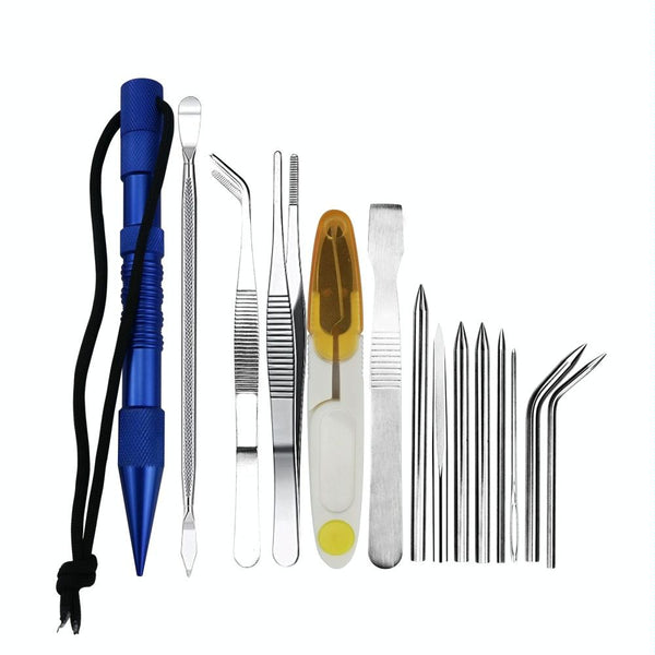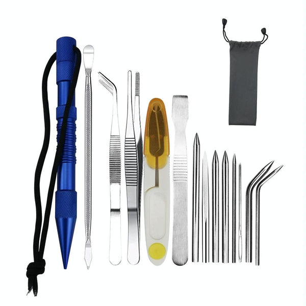 -14 pcs / set (about 200g/set): marlin nail x1, pin x1, 3x78mm umbrella rope needle x1, 5x78mm umbrella rope needle x1, 5x78mm flat umbrella rope needle x1, flattener x1, 6x78mm umbrella rope needle x1, 3x78mm curved needle x1, 5x78mm curved needle x1, 5x90mm steel needle x1, scissors x1, large flattener x1, curved stainless steel tweezers x1, stainless steel tweezers x1