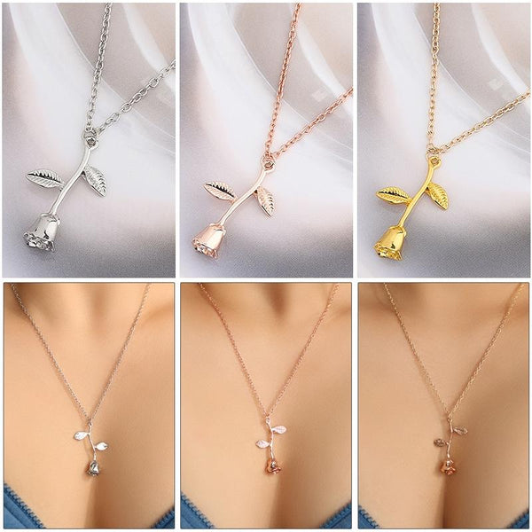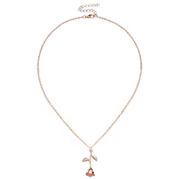 Valentines Day Gift Rose Flower Pendant Jewelry Chain Necklace, Chain Length: 45cm(Rose Gold)