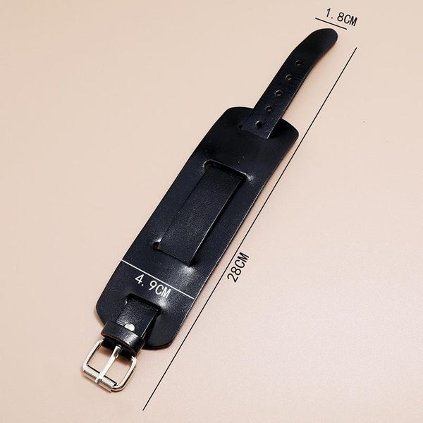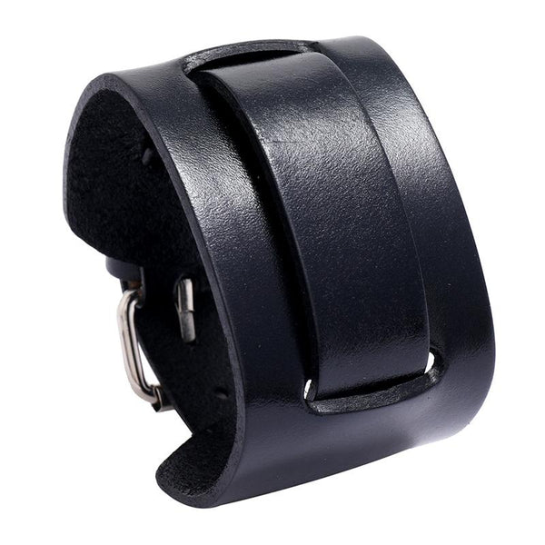 Vintage Adjustable Bracelet Simple Punk Wide Leather Bracelet(Black)
