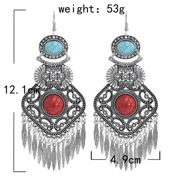 Vintage Tassel Earrings Exaggerated Turquoise Jewelry Earrings(Red)