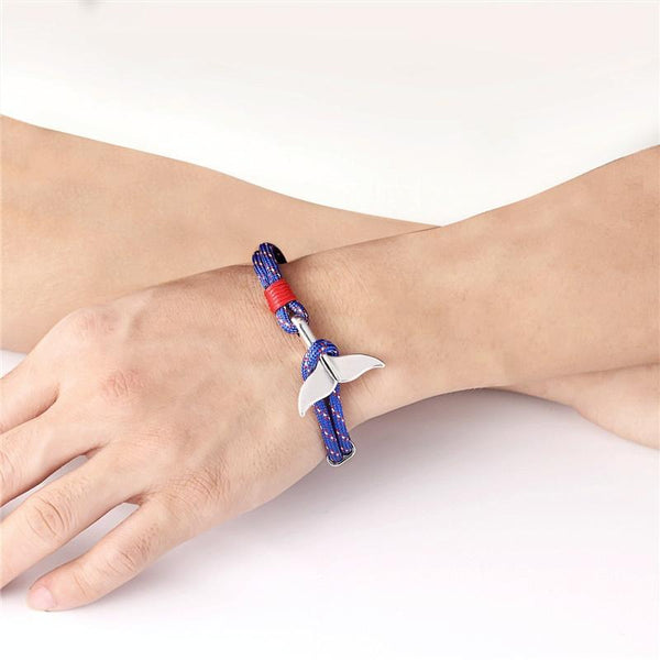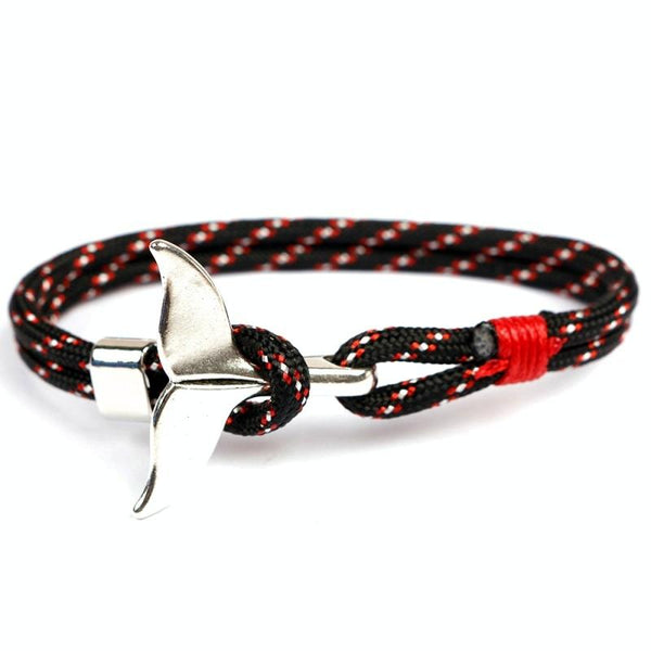 Whale Tail Anchor Charm Nautical Survival Rope Chain Bracelets(Red)
