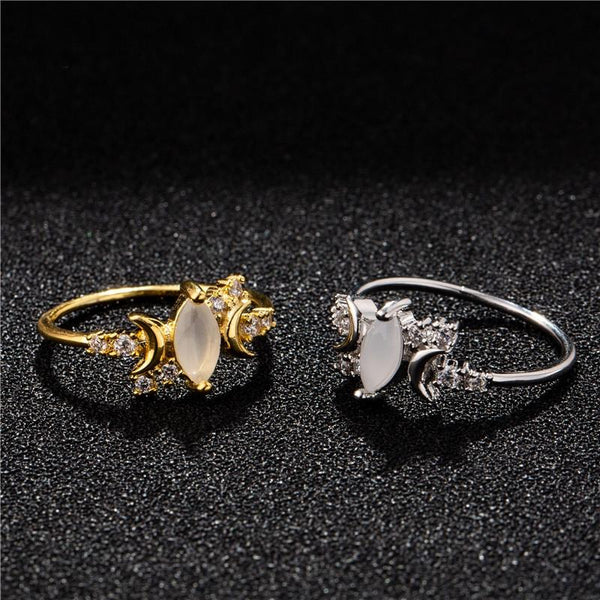 White Opal Ring Women Crystals Engagement Rings, Ring Size:5(Gold)