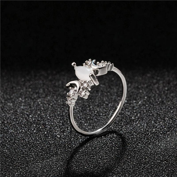 White Opal Ring Women Crystals Engagement Rings, Ring Size:8(Gold)