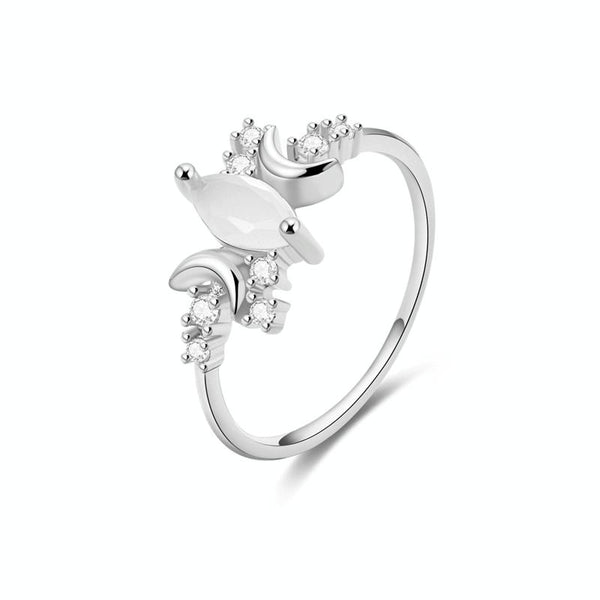 White Opal Ring Women Crystals Engagement Rings, Ring Size:8(Silver)
