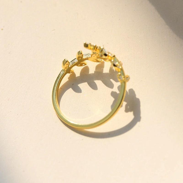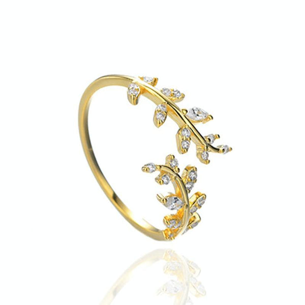 Willow Leaf Opening Sterling Silver Simple Zirconia Tree Branch Ring Bracelet(Golden)