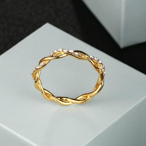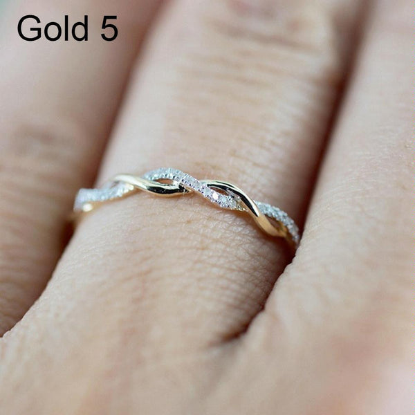 Woman Classical Cubic Zirconia Twist Shape Ring, color:gold(5)