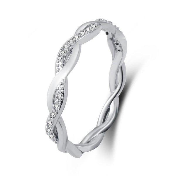 Woman Classical Cubic Zirconia Twist Shape Ring, Color:Silver(5) (5)