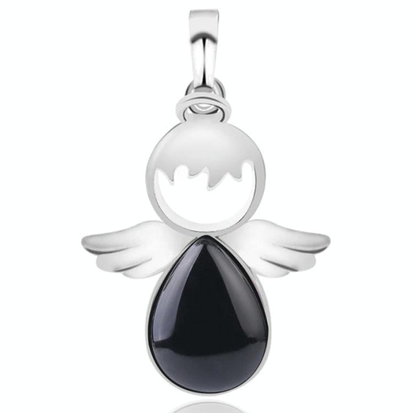 Women Angel Wings Pendants Natural Crystal Stone Necklaces(Black Onyx)