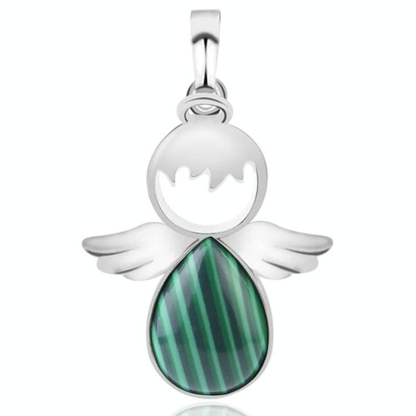 Women Angel Wings Pendants Natural Crystal Stone Necklaces(Malachite)