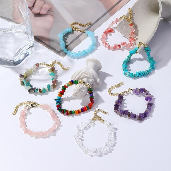 Women Boho Natural Gravel Beaded Bracelet Anklet(S2211-11 Colorful)