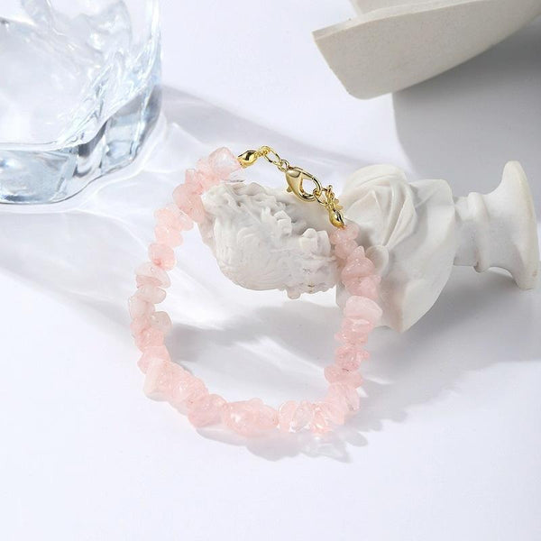 Women Boho Natural Gravel Beaded Bracelet Anklet(S2211-14 Tender Pink)
