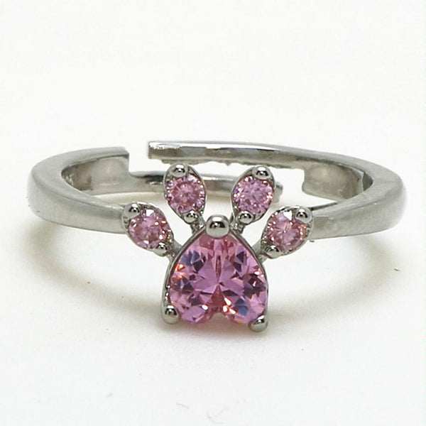 Women Crystal Cute Cat Claw Opening Adjustable Ring Jewelry(Pink diamond white gold)