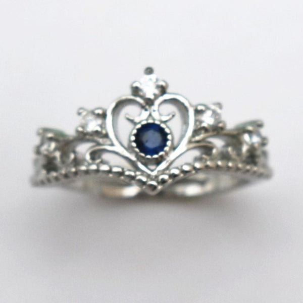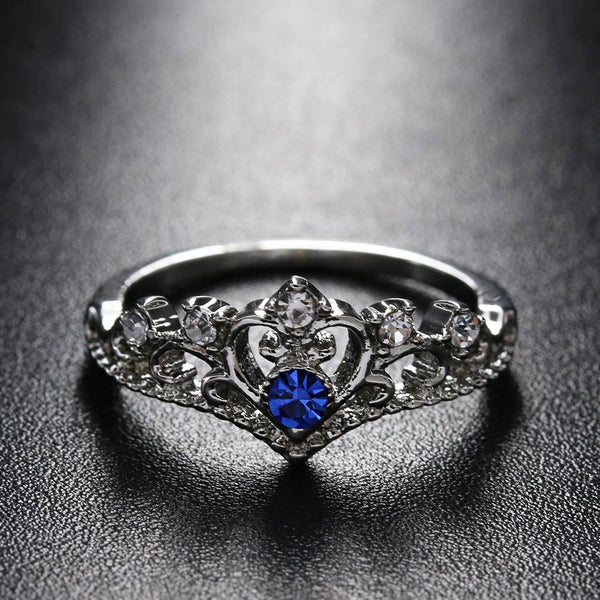 Women Crystal Ring Fashion Love Heart Crown Rhinestone Ring(Blue Diamond)