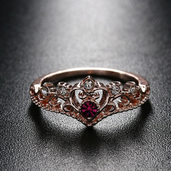 Women Crystal Ring Fashion Love Heart Crown Rhinestone Ring(Red diamond)