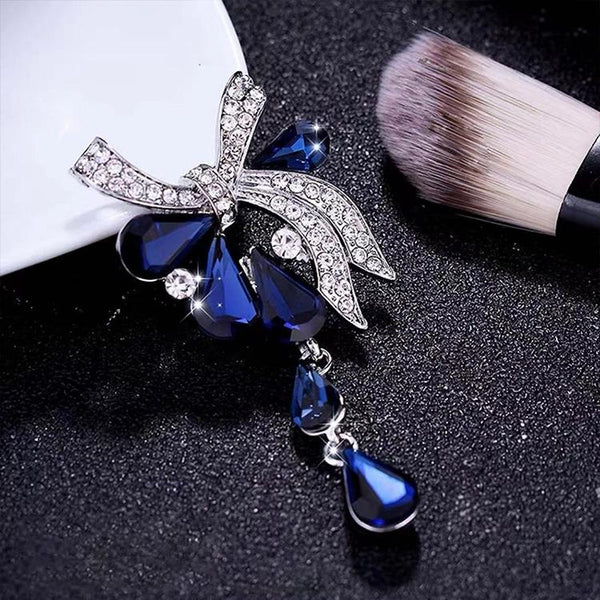 Women Drill Droplet Butterfly-knotted Brooch(Blue)