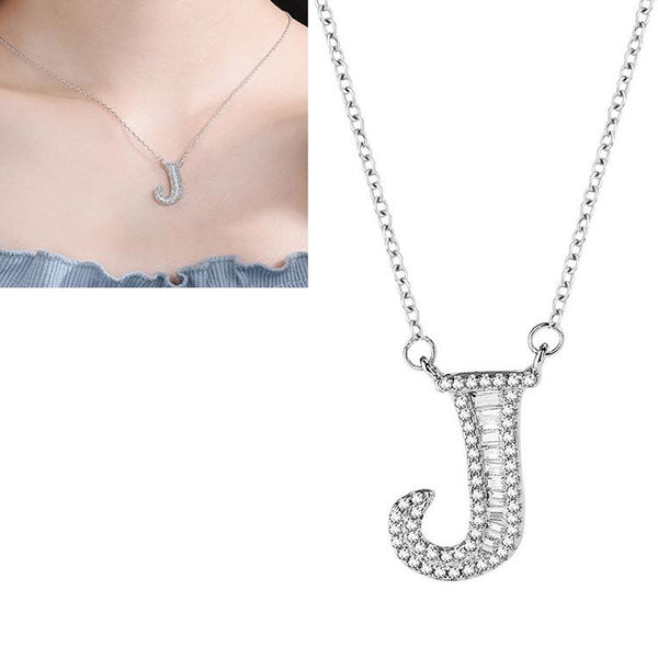Women Fashion S925 Sterling Silver English Alphabet Pendant Necklace, Style:J