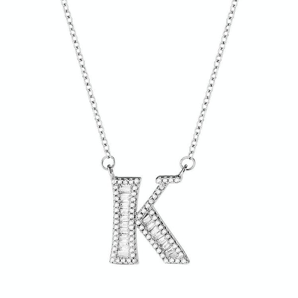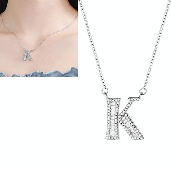 Women Fashion S925 Sterling Silver English Alphabet Pendant Necklace, Style:K