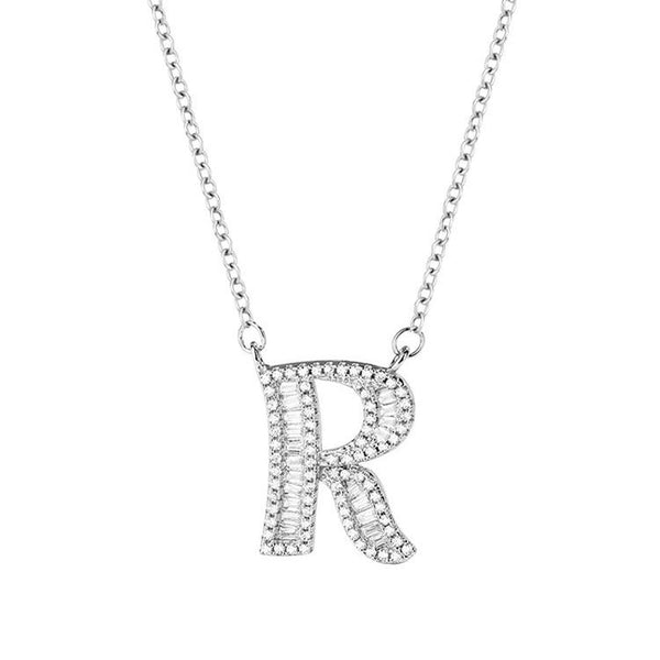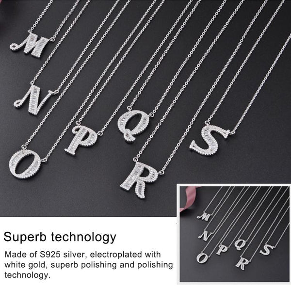 Women Fashion S925 Sterling Silver English Alphabet Pendant Necklace, Style:R