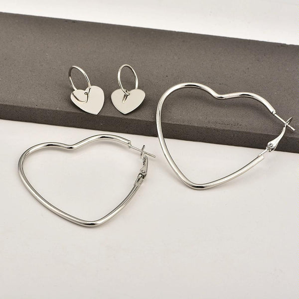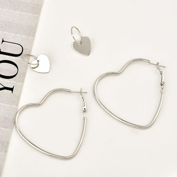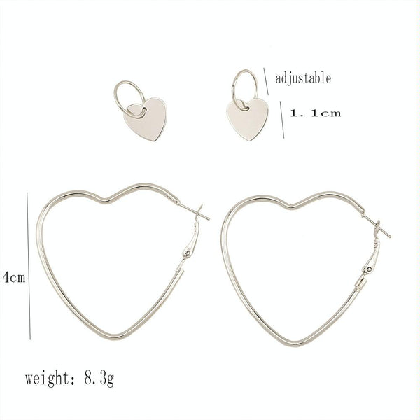 Women Fashion Simple Metal Love Heart Hoop Earrings Set