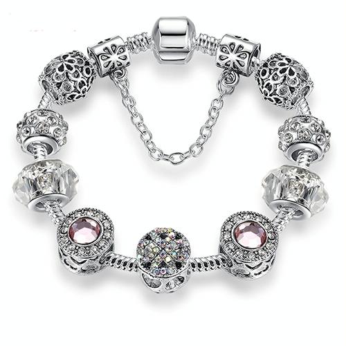 Women Fashion Simple Panjia Opal Crystal Alloy Bracelet, Length:17cm(Silver)