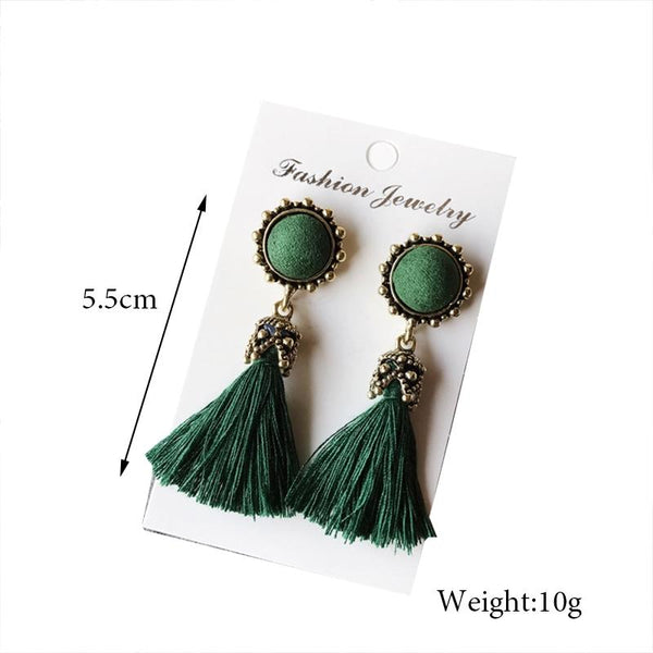 Women Fashion Vintage Velvet Ball Fringed Drop Earring(Green)