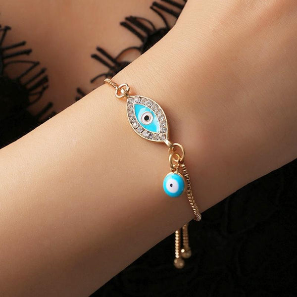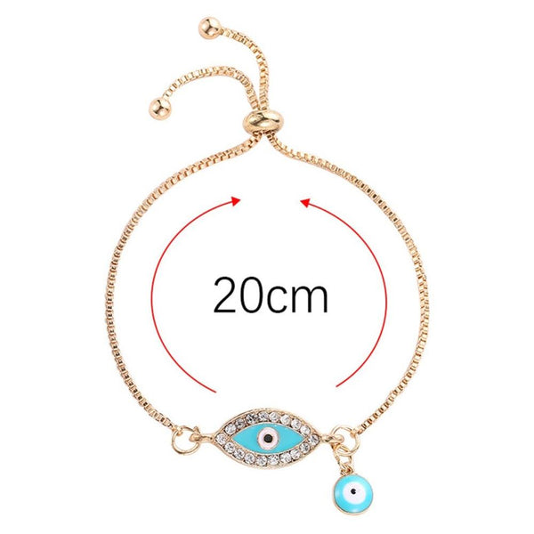 Women Handmade Blue Crystal Evil Eye Lucky Chains Bracelets(Light Blue)