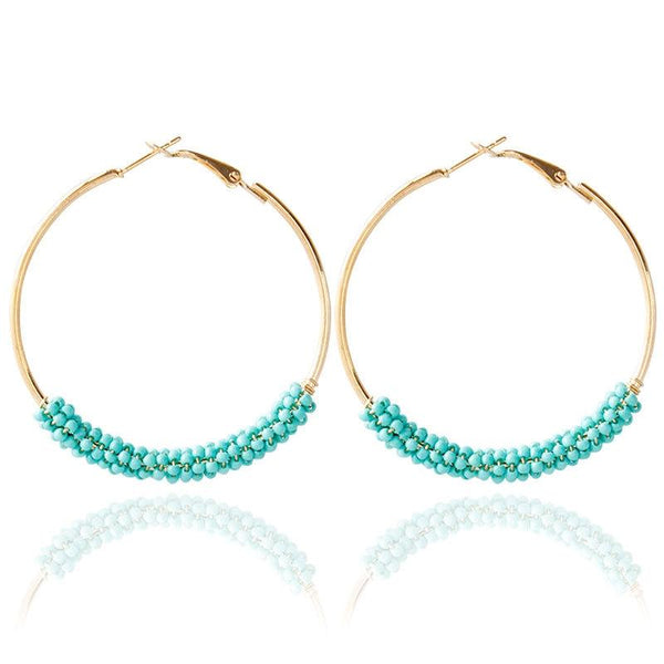 Women Hoop Earrings Ethnic Vintage Bead Boho Earrings Statement Jewelry(blue)