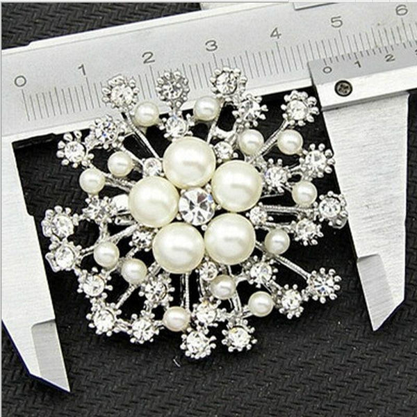 Women Large Snowflake Imitation Pearls Rhinestones CrystalBrooch Pin Jewelry(Gold)