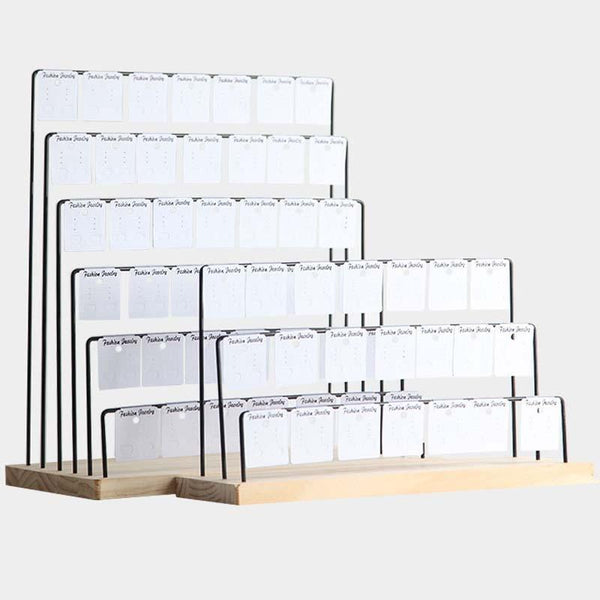 Wooden Base Iron Multi-Layer Earrings Storage Display Rack Can Hang Jewelry Display Shelf, Style: 5 Layers (White)