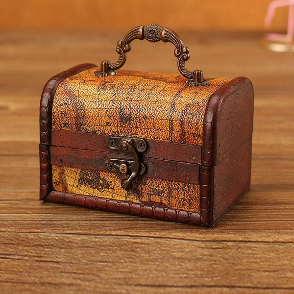 Wooden Crystal Jewelry Storage Box Antique Distressed Wedding Candy Gift Box(6076F Yellow Map)