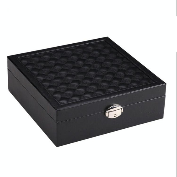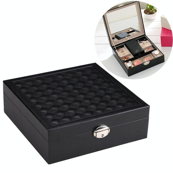 Wooden Jewelry Box Necklace Ring Storage Organizer Large Jewel Cabinet Gift Case(Black)