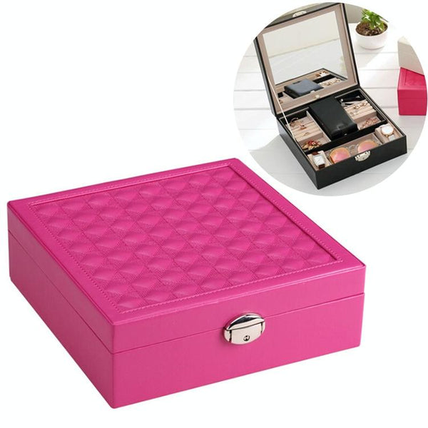 Wooden Jewelry Box Necklace Ring Storage Organizer Large Jewel Cabinet Gift Case(Magenta)