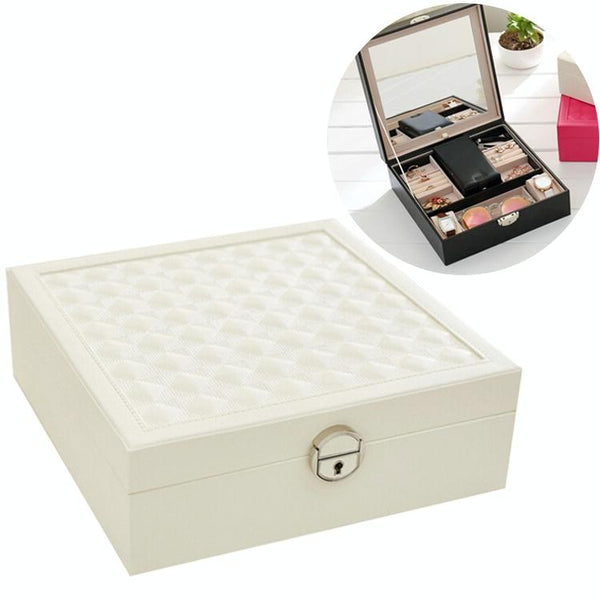Wooden Jewelry Box Necklace Ring Storage Organizer Large Jewel Cabinet Gift Case(White)