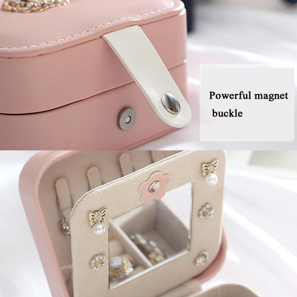 XH-001 Simple Creative Travel Portable Leather Earrings Jewelry Box, Specification: 11x11x5.8 cm(Pink)