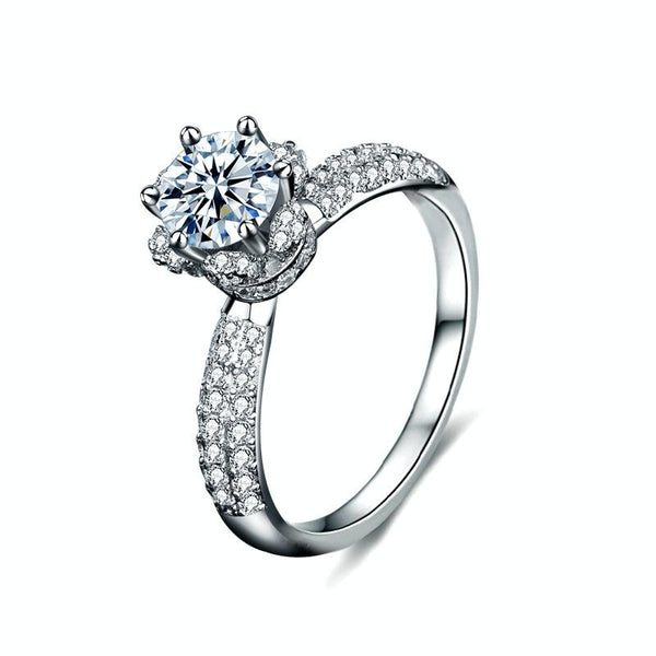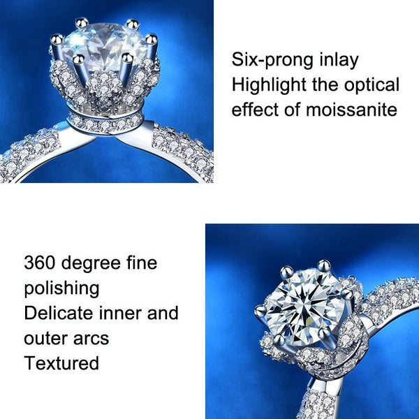 XJZ012 925 Sterling Silver Moissanite Ring Crown Ring Engagement Jewelry, Size: 7(White Gold)