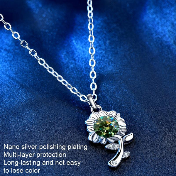 XMA033 925 Silver Necklace Moissanite Sunflower Flower Pendant Jewelry, Color: Champagne Yellow
