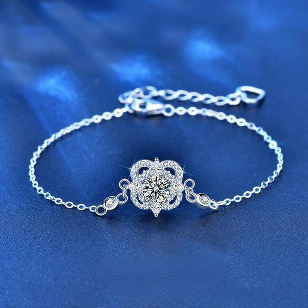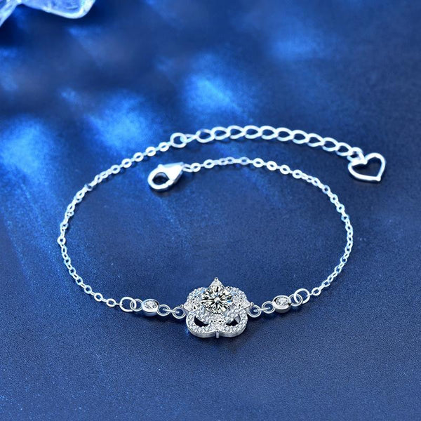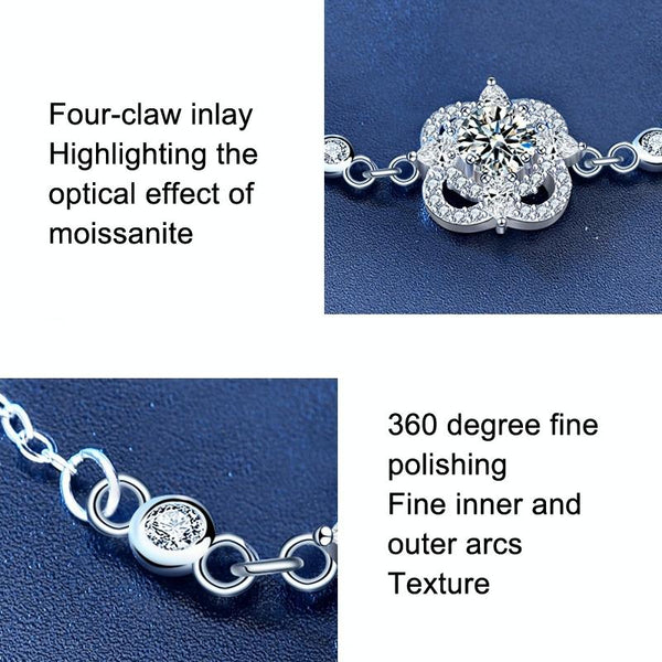 XRA002 Four-Leaf Grass Bracelet 925 Silver Moissanite Diamond Bracelet(50 Points White Gold)