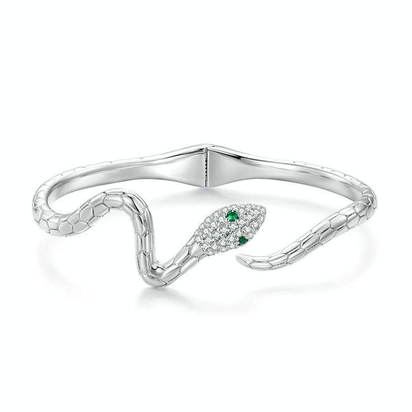 YIB058 Copper White Gold Plated Zirconium Stone Spirit Snake Guardian Open Bracelet