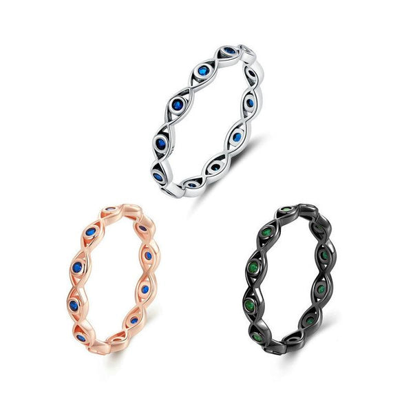 Zircon Lucky Eye Sterling Silver S925 Ring, Size: No.8(Rose Gold Plated)