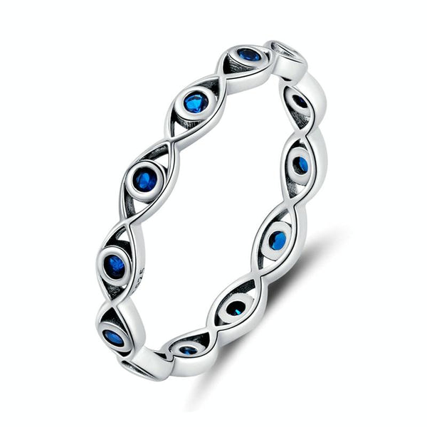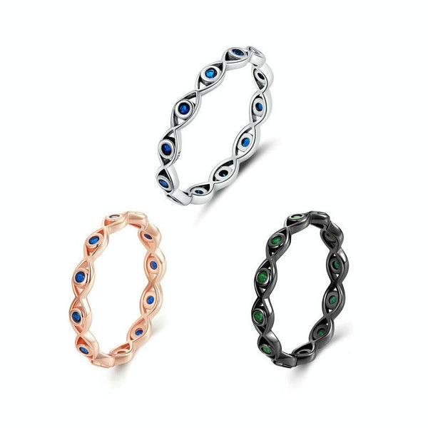Zircon Lucky Eye Sterling Silver S925 Ring, Size: No.9(Oxidized Silver)