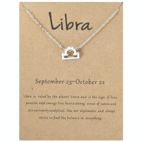 Zodiac Signs Necklace Electroplate Alloy Short Chain Jewelry, Style: Libra Silver