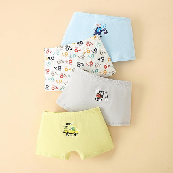4pcs/set Children Lycra Cotton Boxer Briefs Boys & Girls Pants, Height: 160cm(Boys Car Series)